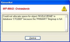 W nawale pracy z programami dla Windows opartymi na bezpłatnym silniku bazy SQL2000 możemy zapomnieć o istniejących ograniczeniach. W efekcie spotkamy komunikat widoczny na obrazku obok.