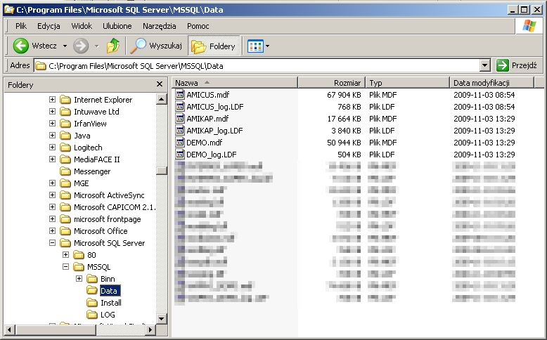 Plik jest umiejscowiony na komputerze uznawanym za serwer i udostępniającym bazę pozostałym komputerom w sieci ( o ile istnieją). Domyślną lokalizacją plików bazy danych ( w przypadku systemu Windows XP lub starszego)jest folder C:\Program Files\Microsoft SQL Server\MSSQL\Data. Pliki z rozszerzeniem *.mdf zawierają bazy danych. Często nazwa bazy jest tożsama z nazwą pliku, ale nie jest to obowiązkowe. Nazwy bazy i pliku mogą być różne. Najprościej zlokalizować problematyczny plik po dacie aktualizacji, no i oczywiście wielkości.