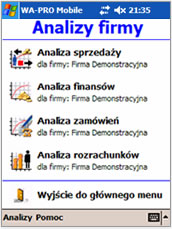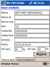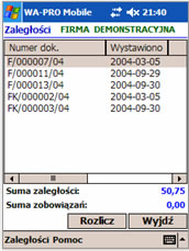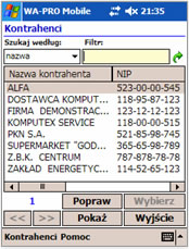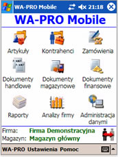 Program zainstalowany na urządzeniu przenośnym udostępnia bogatą funkcjonalność systemu WF-Mag dla Windows. Działa w trybie off-line bazując na pracującym w urządzeniu serwerze bazy danych SQL.