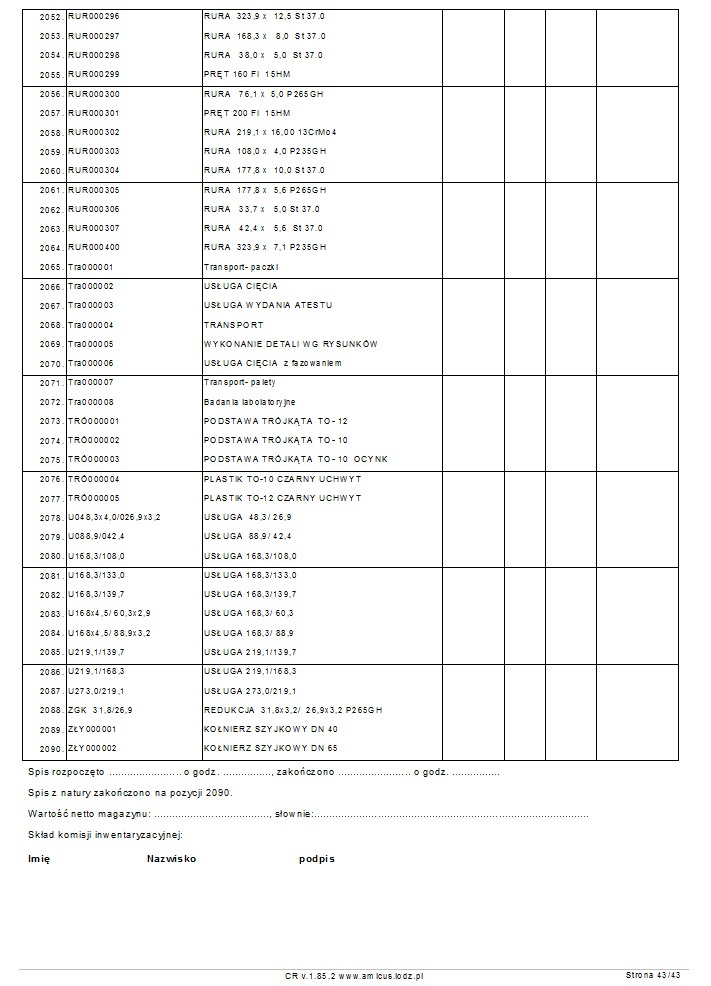 - "Spis z natury zakończono na pozycji ( i w miejscu raport automatycznie wprowadza numer ostatniej linii spisu )"",