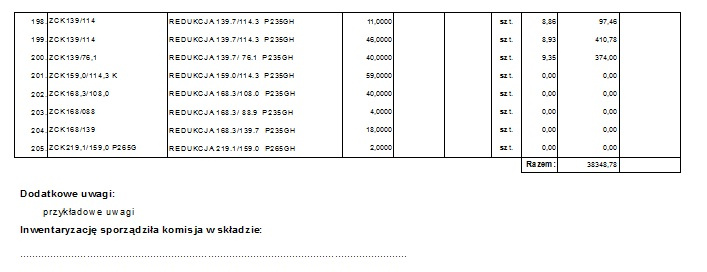- "Inwentaryzację sporządziła komisja w składzie:..................................",